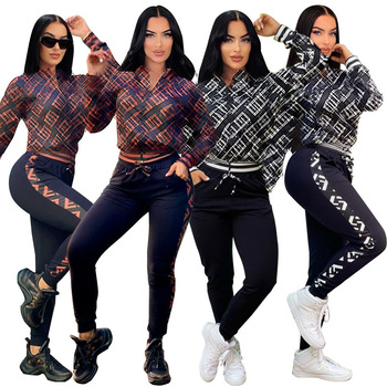 Châu Âu Mỹ của phụ nữ y71613 thể thao ngoài trời hai mảnh thiết lập dập nổi thêu ren dây kéo bán buôn qua biên giới mùa đông